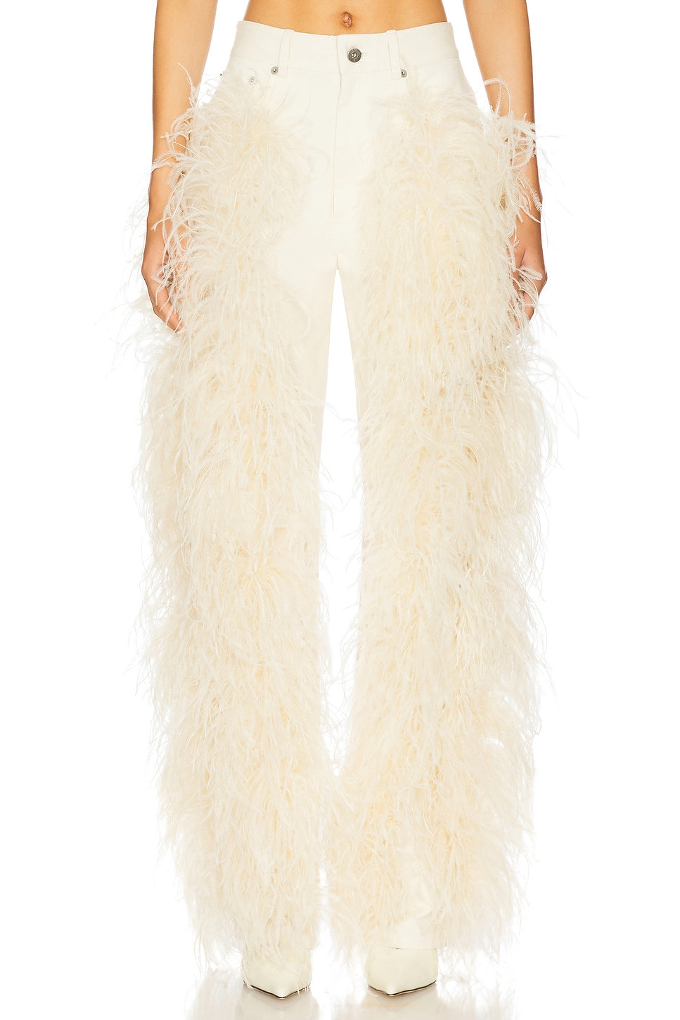 Denim Pant With Feathers