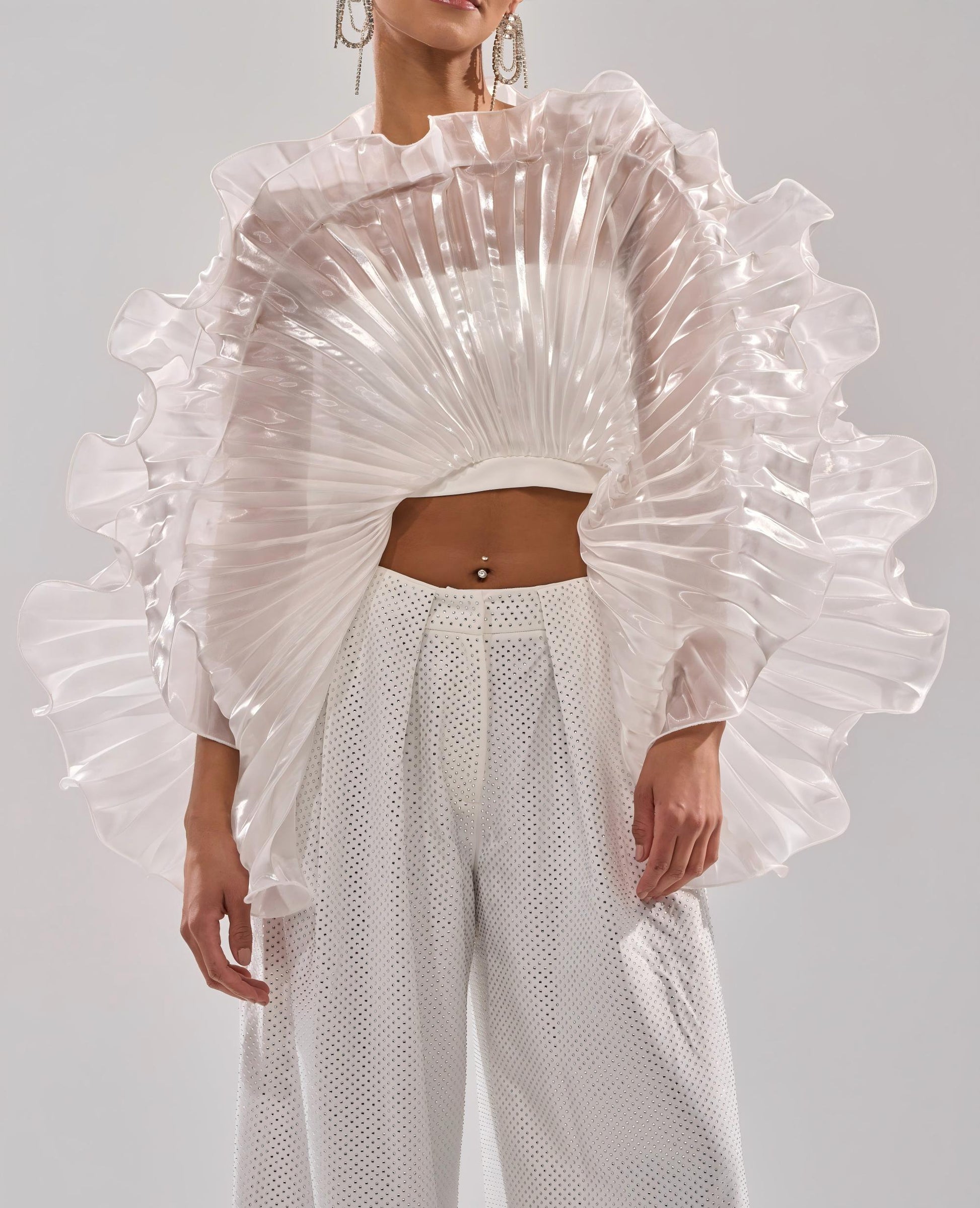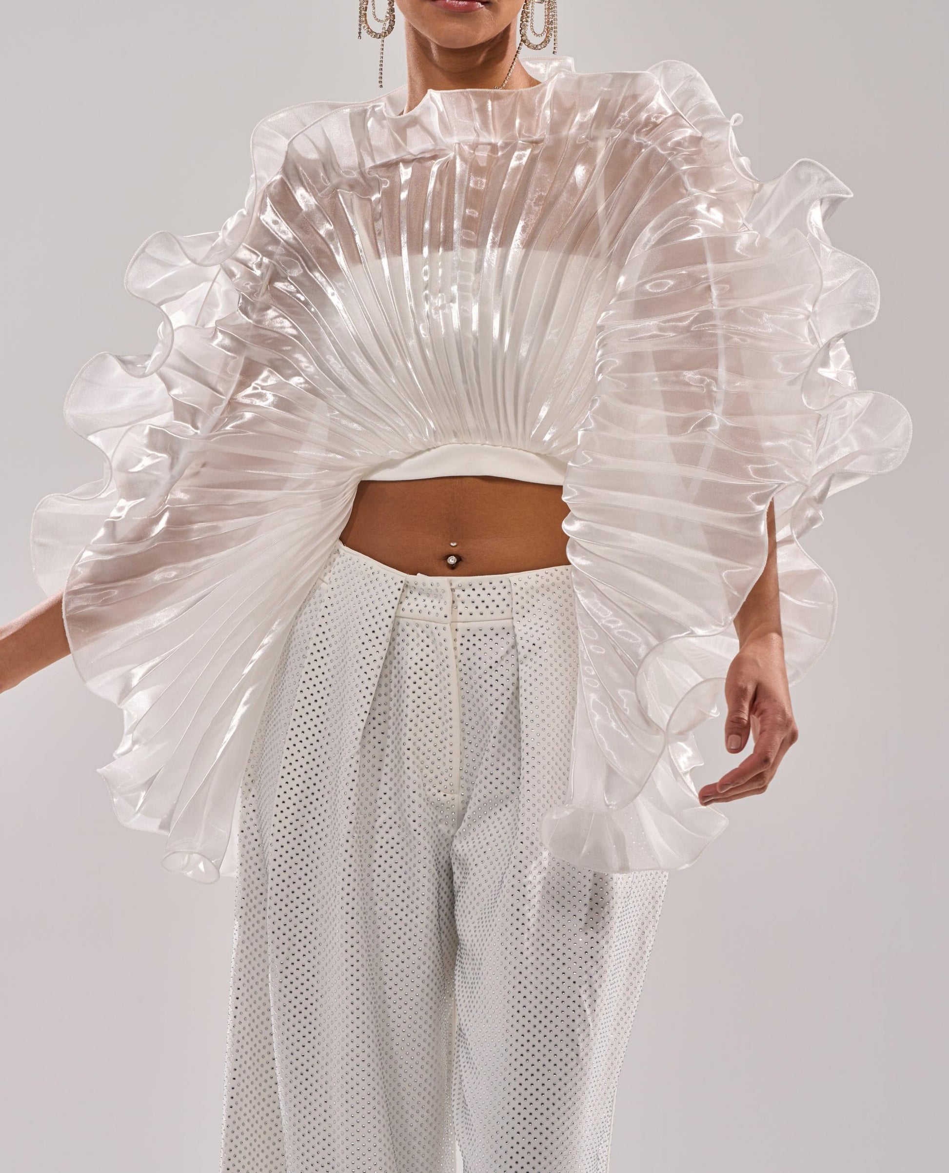 Fan-shaped three-dimensional pleated top