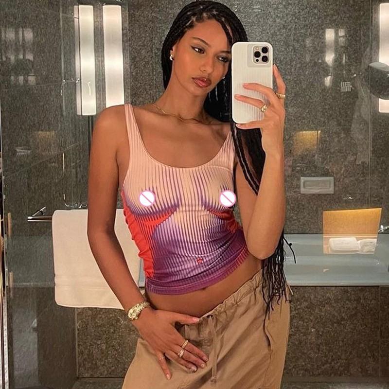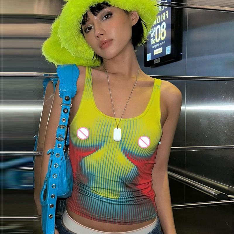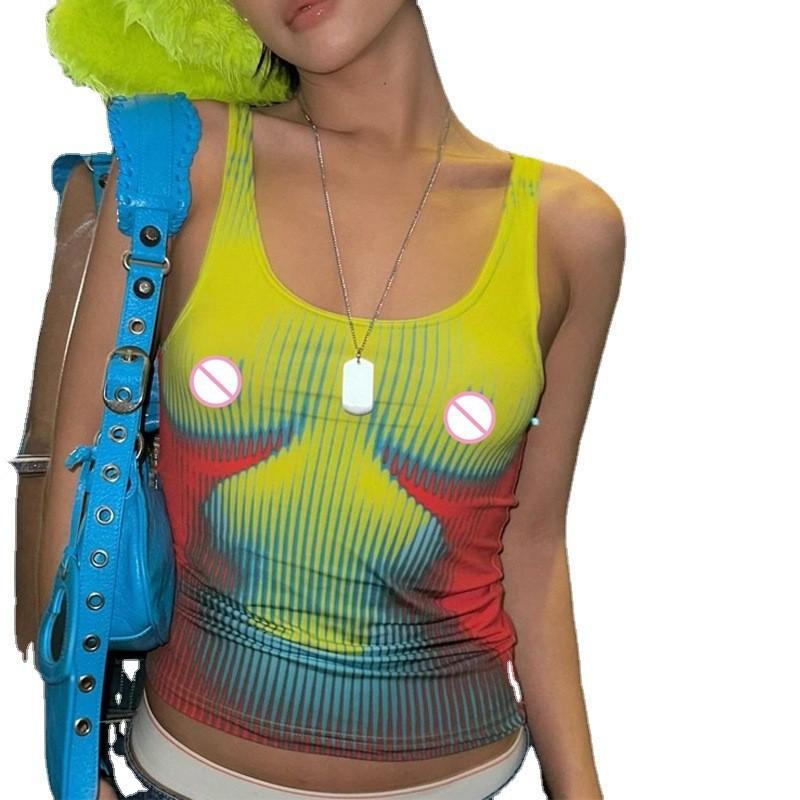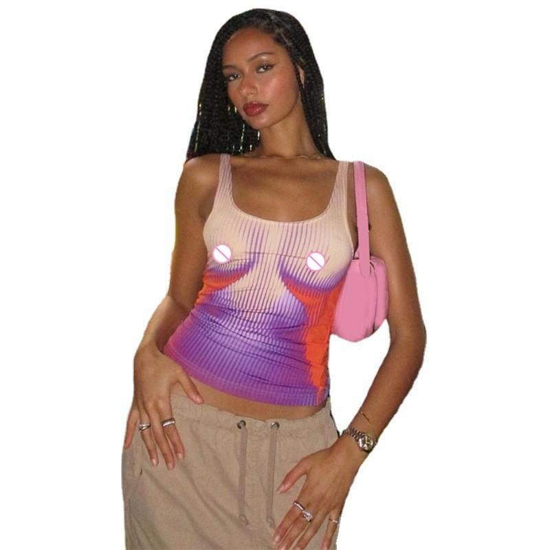 Fashion Printed Slim Fit U-Neck Navel Bare Vest