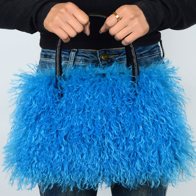 Imitation Wool Tote Bag With Genuine Leather Handles Handbag