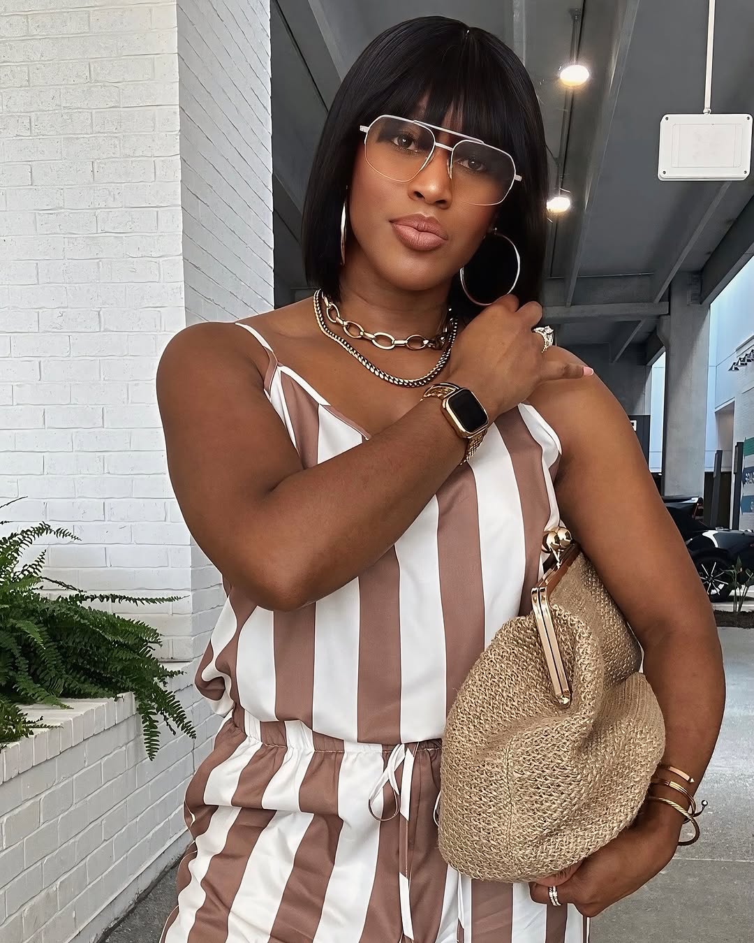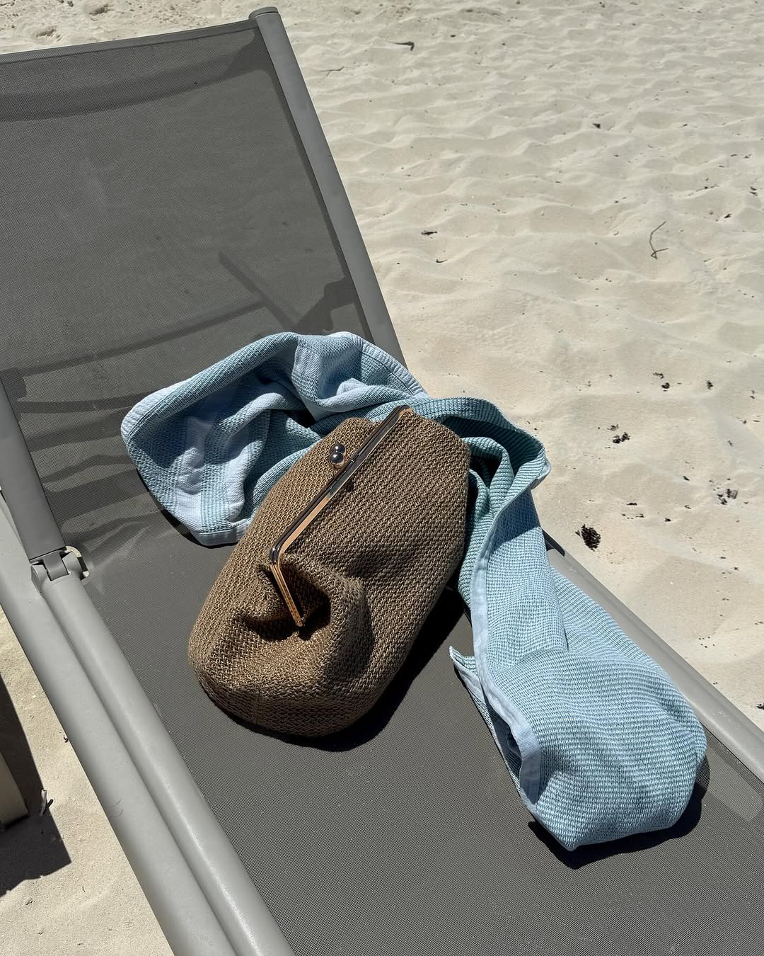 Large woven kiss lock bag