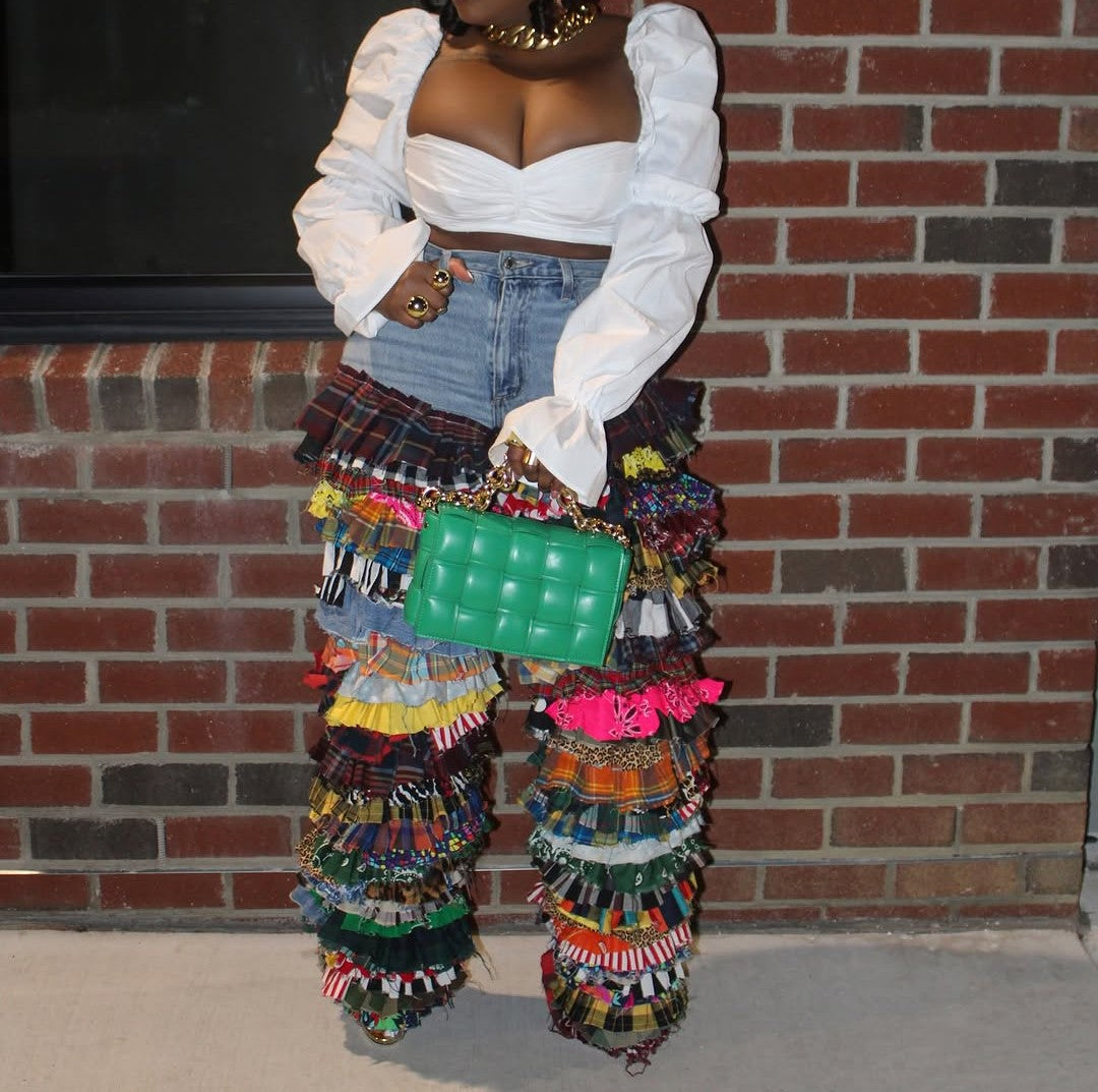 Niche design denim patchwork jeans