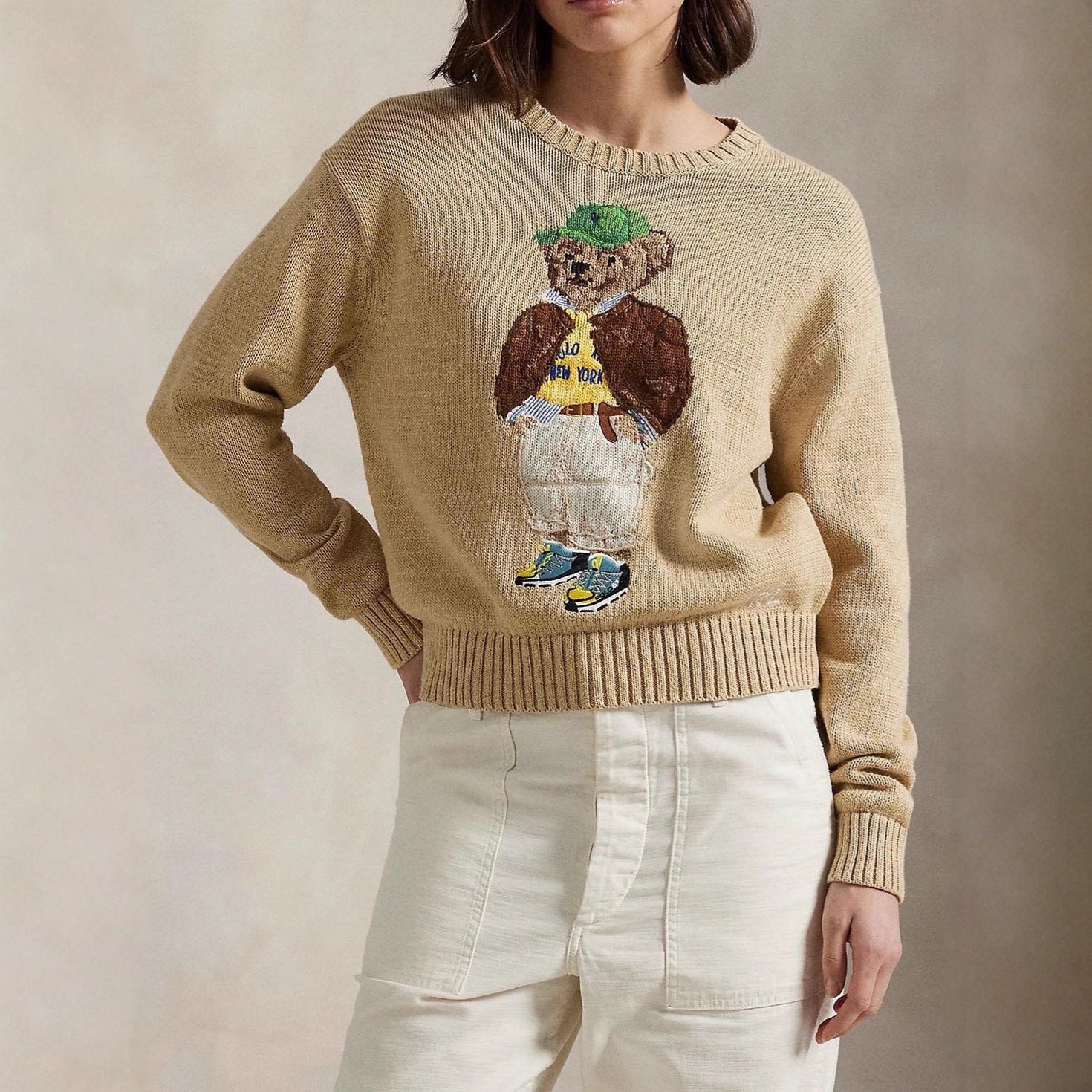 Retro classic heavy embroidery cartoon bear sweater