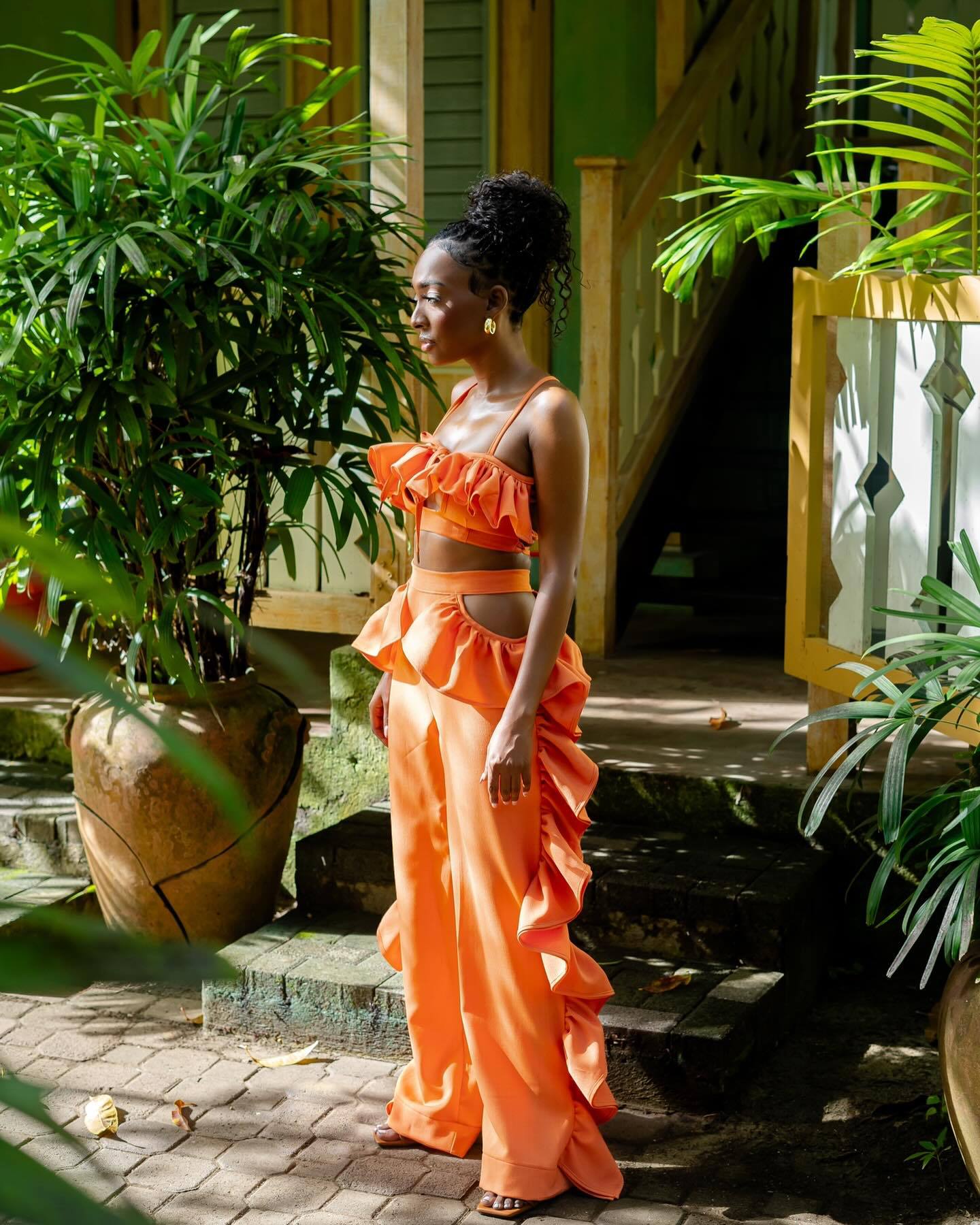 Ruffle High Waist Wide Leg Bikini Set