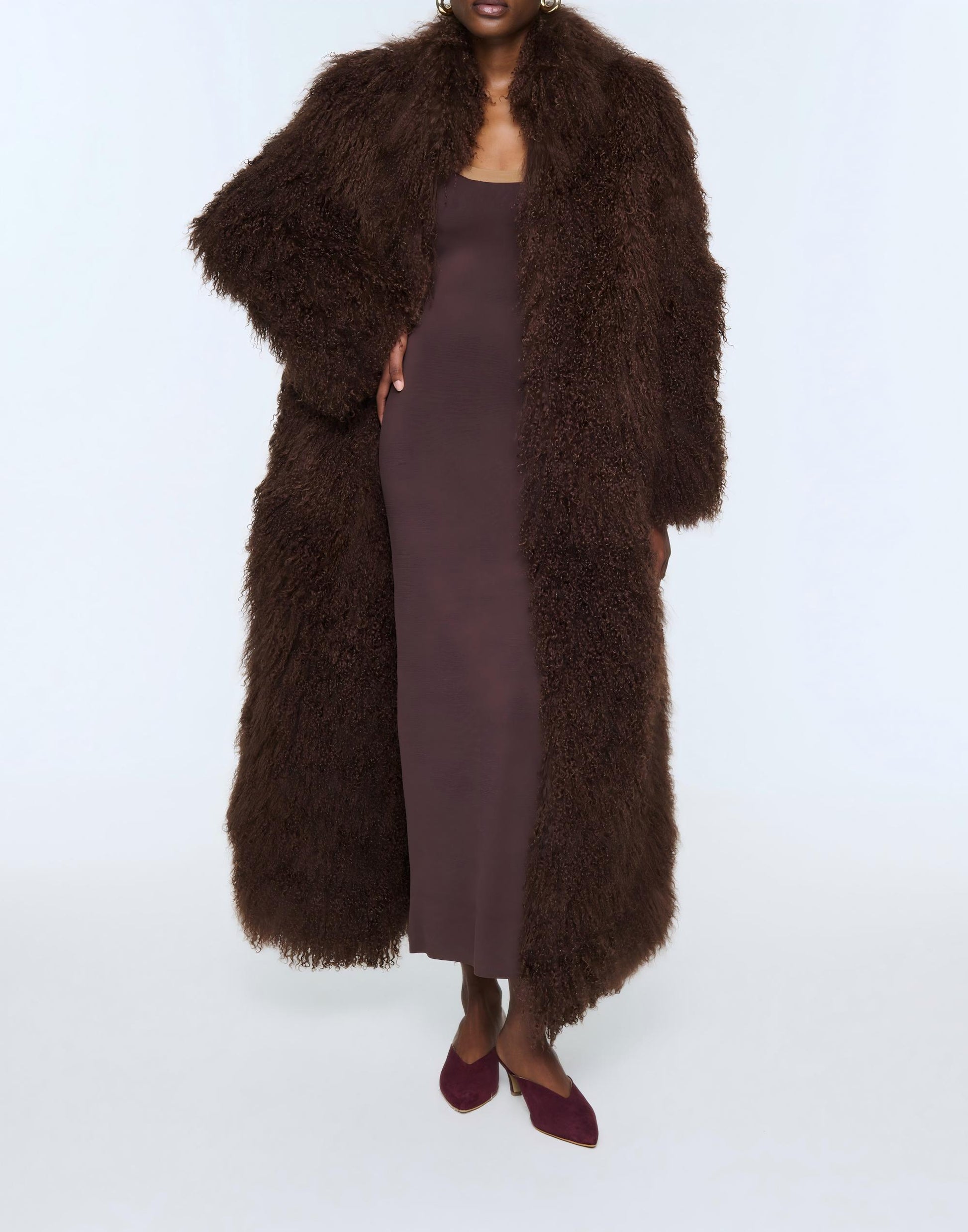 Cut from the most sumptuous, Mongolian sheepskin, this coat makes a statement wherever it goes. The natural curly finish and the discreetly concealed fastenings make this piece feel as chic as it is cosy.