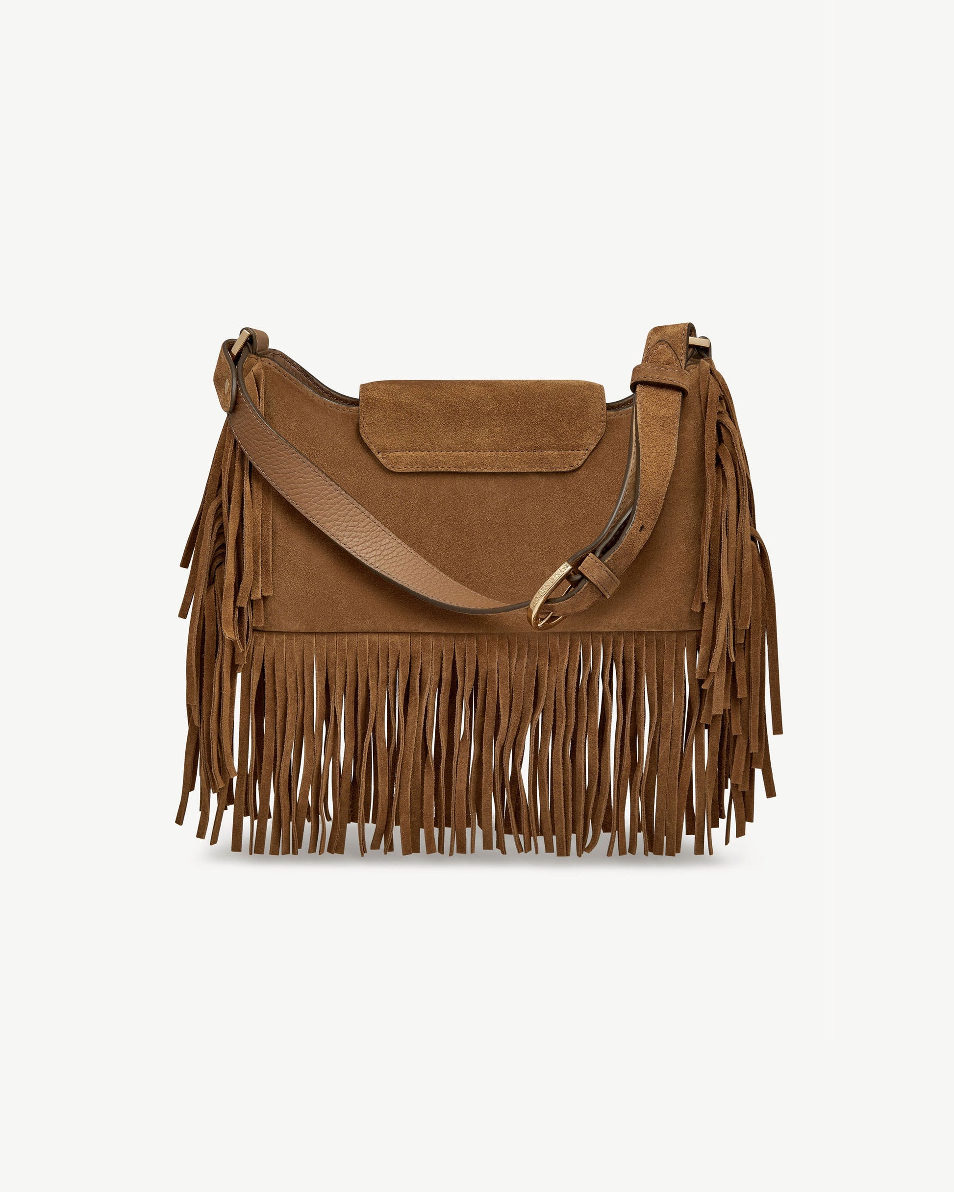 Combining a cool, sophisticated look with refined beauty, this best-selling shoulder bag is now available in a limited edition fringe design. Crafted from soft suede, it's inspired by the romance of the American prairie. The fringe evokes the delicate, gentle movement of a gentle breeze sweeping across the grassland. Each fringe is meticulously cut by skilled leather artisans using special molds, ensuring the highest quality down to the smallest detail.