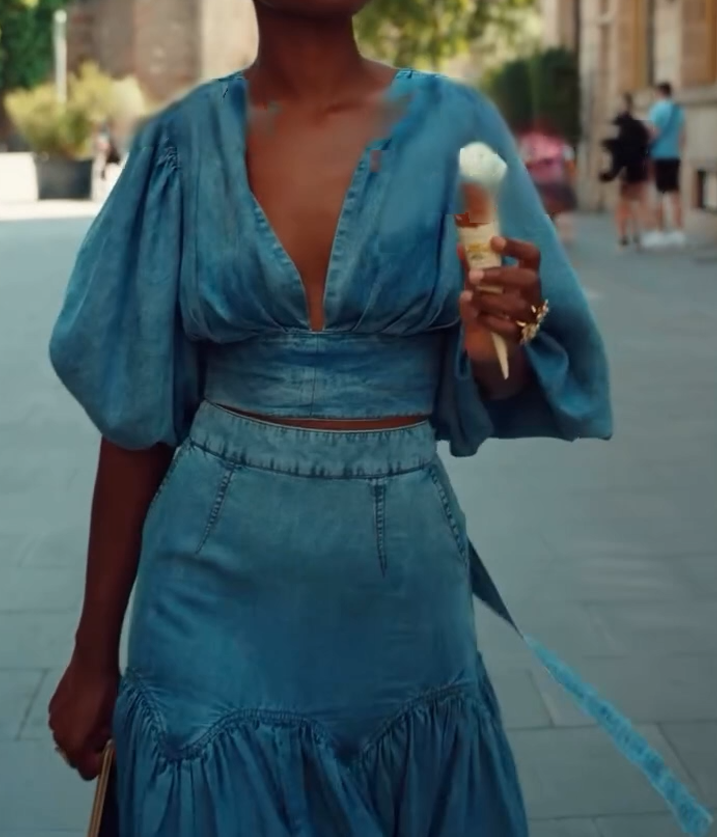 Soft denim long skirt two-piece suit