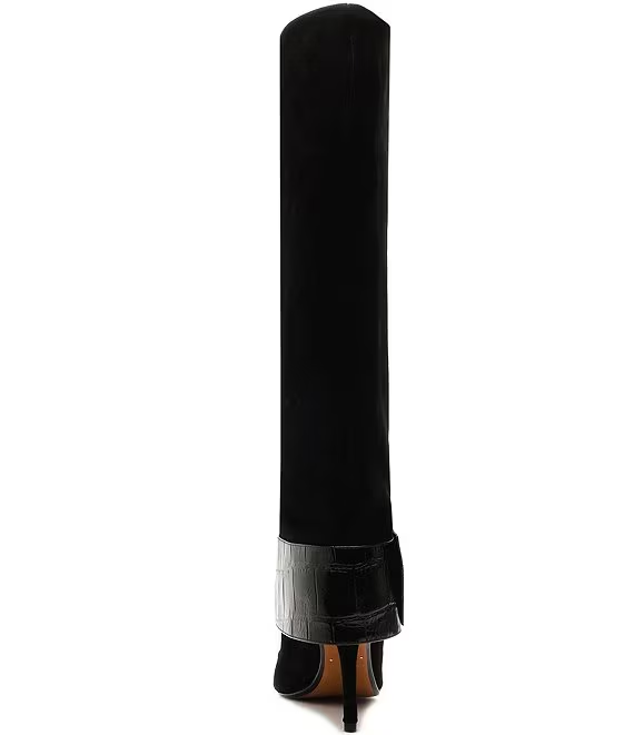 Suede Croco Strap Big Buckle Hardware Tall Dress Boots